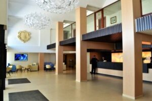 V hotelu se nachází vstupní hala s recepcí, hlavní restaurace, pizzerie, kavárna a obchod se suvenýry. U venkovního bazénu je také bar a terasa s lehátky a slunečníky, které jsou hostům k dispozici zdarma. Hotel má 392 pokojů, které jsou vybavené klimatizací, minibarem a balkony s výhledem buď na záliv, nebo na vnitřní nádvoří s minigolfovým hřištěm.